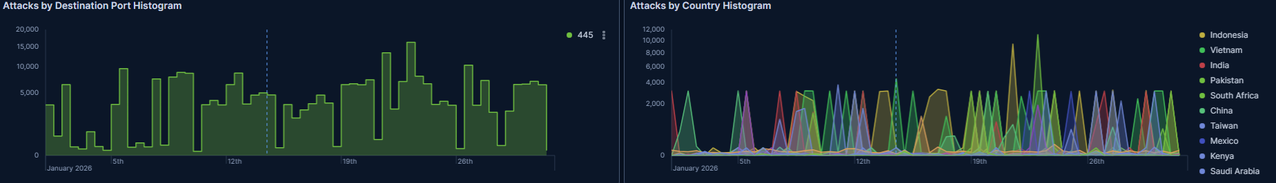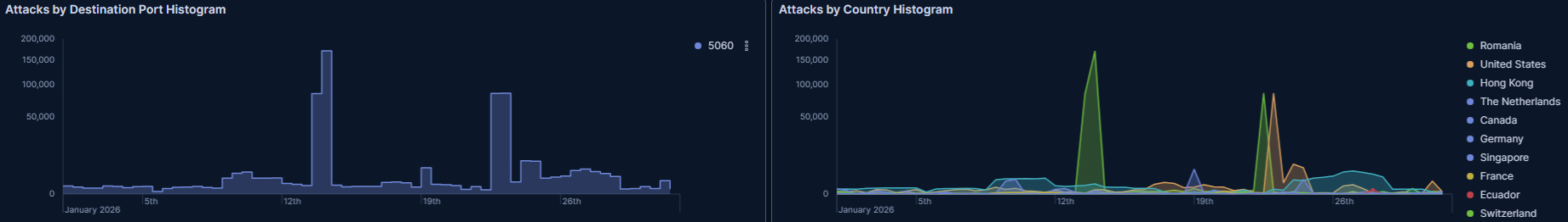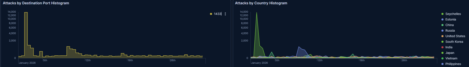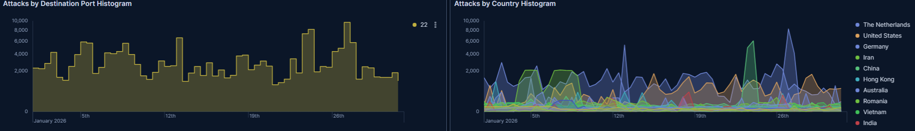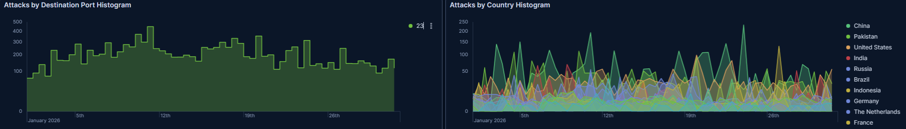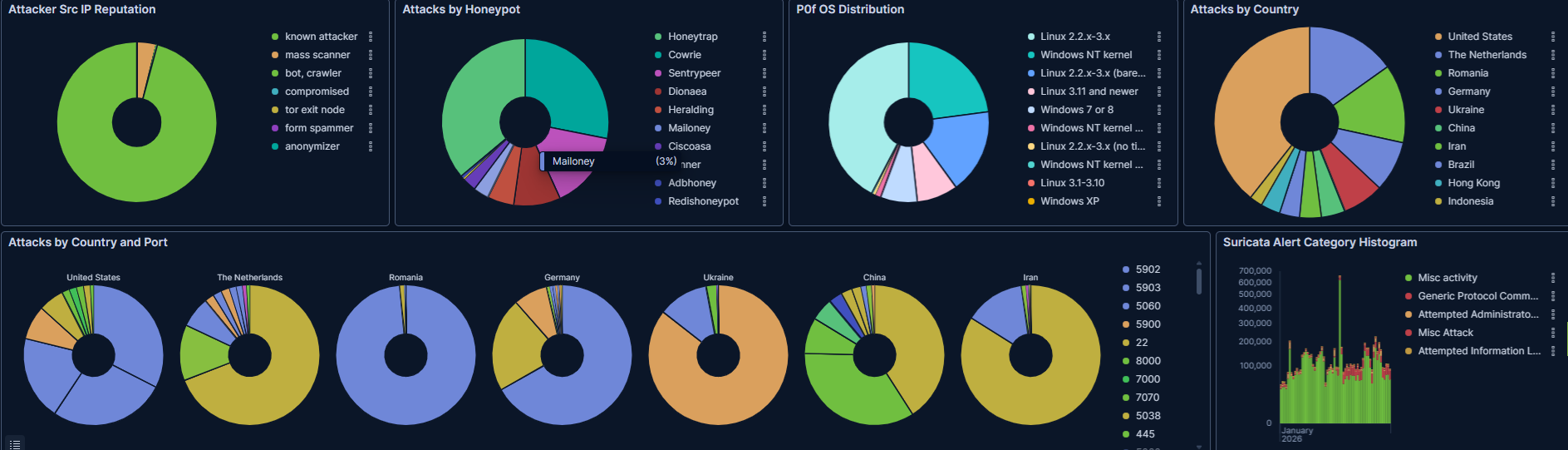 T-potがDebian13に対応したということで、今月からベースをDebian13に更新しました。そのためか、DDoSの観測がなくなりました。DDoSがなくなったのではなく、観測しなくなったのでしょう。先月のDDoSが700万件でアクセス総数が1100万件だったので、アクセス数がそれほど減っているわけではないようです。なので、今後はDDoS以外のもので見ていくことになるでしょうか・・・