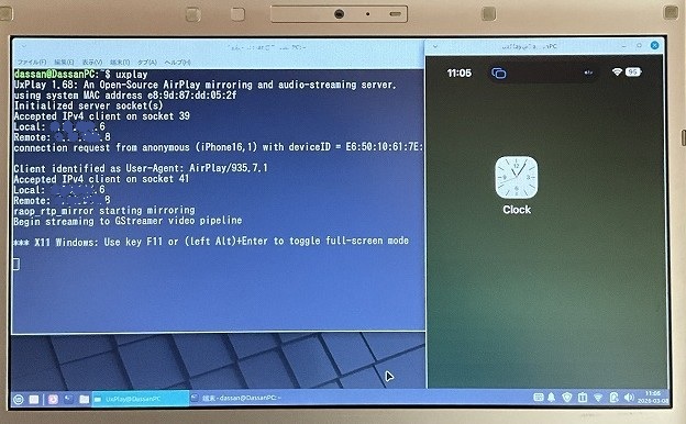 iPhoneの画面をubuntuに映しだす(画面共有 ミラーリング UxPlay)