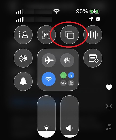 iPhoneの画面ミラーリングのボタンを押します。