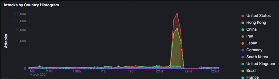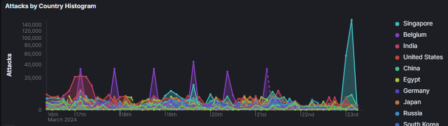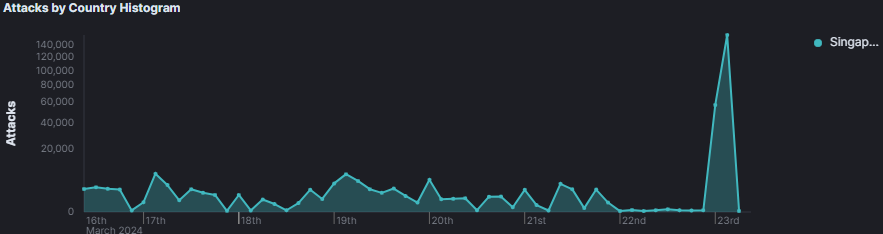 On the morning of the 23rd (JST), there was a sharp increase in accesses from Singapore, to port 22.