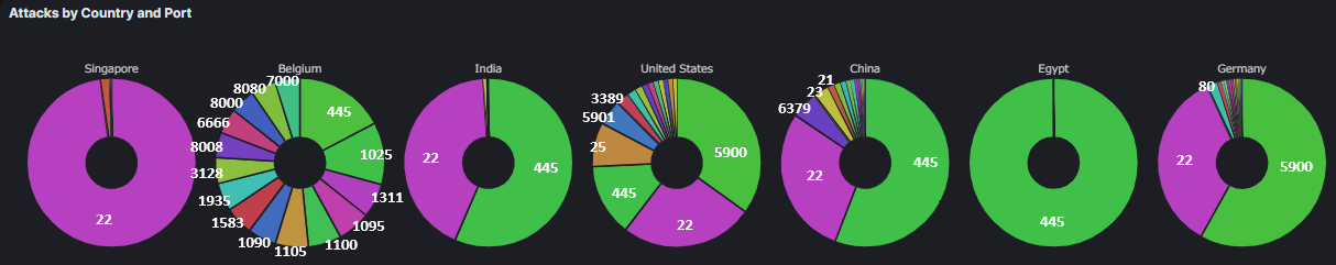 Top ports accessed: (1) 123 (2) 445 (3) 22 (4) 5900 (5) 19