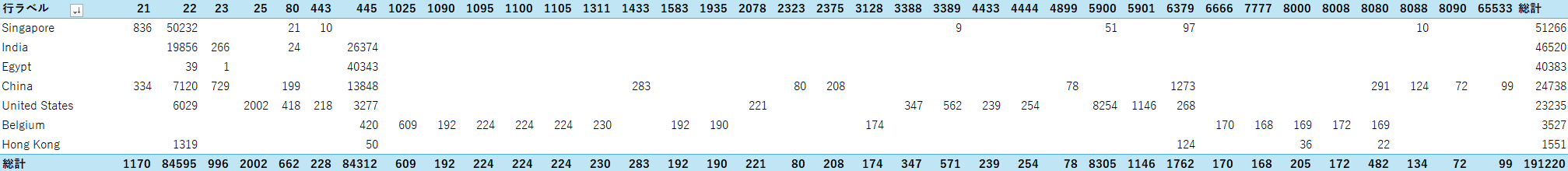 毎回のことですが、ベルギーは満遍なく、ウェルノウンポート以外のポートへのアクセスが多いため、トータルで上位に来ています。今回1位から3位までのシンガポール、インド、そしてエジプトからのアクセスは、ほとんどが、ウェルノウンポートへのアクセスばかりでした。